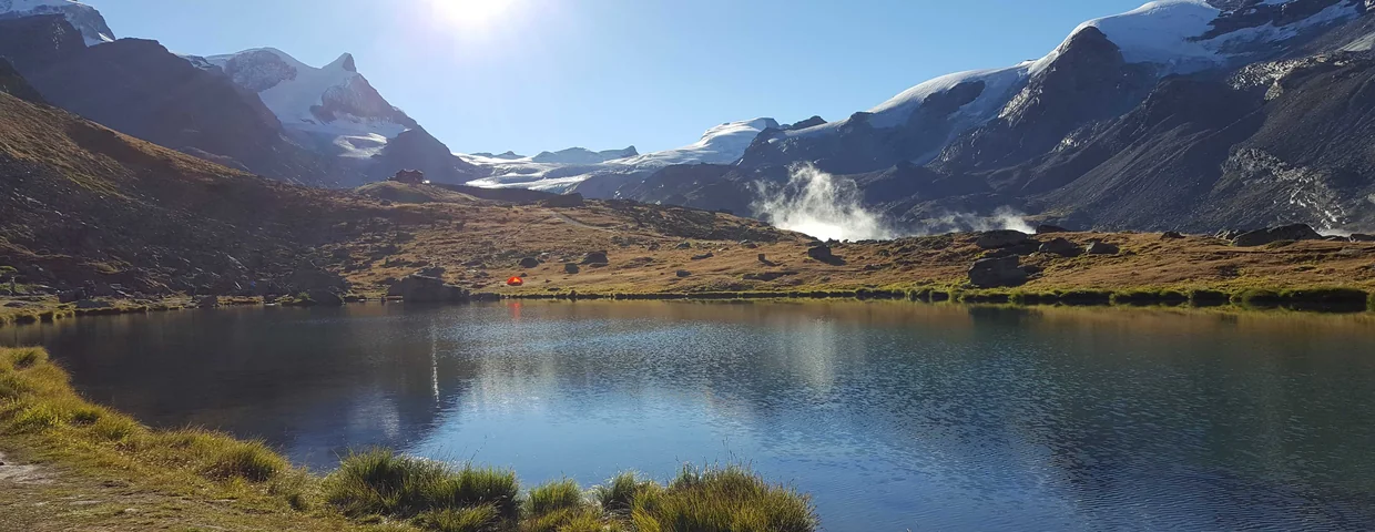 Nicht lange suchen, sondern finden: Der Stellisee lässt sich beispielsweise schnell von Saas-Almagell aus erreichen. Auch der Grindjisee ist eine gute Option für alle, die ein paar entspannte Stunden am Wasser verbringen möchten.