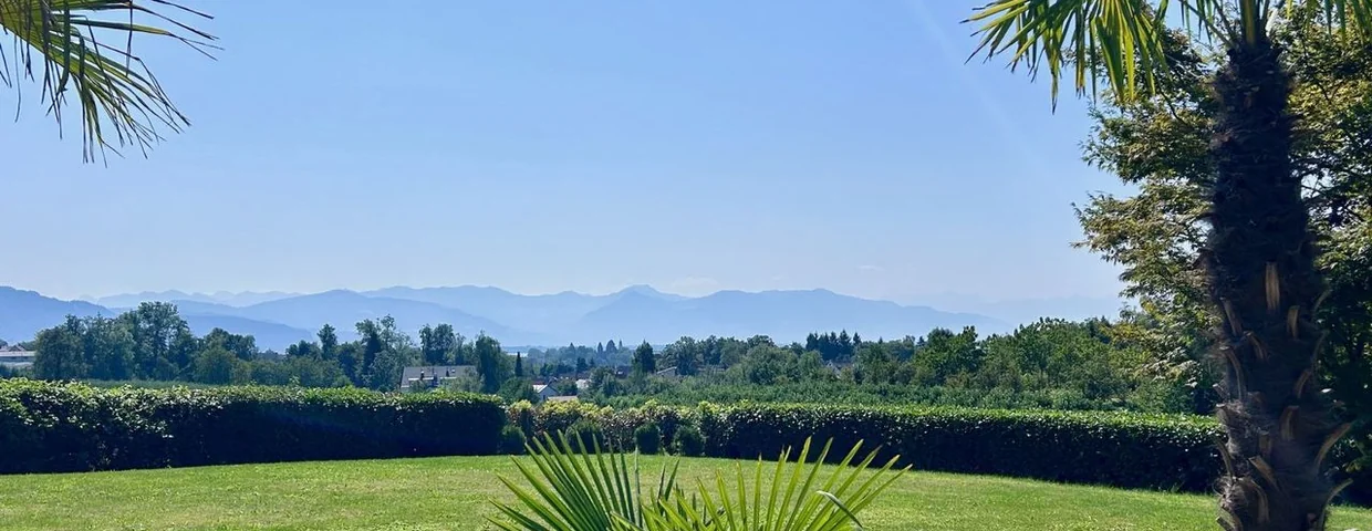 Genießen Sie einen entspannten Urlaub in dieser großzügigen, ländlich gelegenen Ferienwohnung am Stadtrand Lindaus. Es bietet sich Ihnen ein wunderbarer Blick über die direkt an das weitläufige Grundstück angrenzenden Weinberge bis zum Bodensee und den Alpen. Die Ausstattung der hellen 3-Zimmer Wohnung im Erdgeschoss mit zwei Schlafzimmern ist modern und stilvoll, auf hochwertige Materialien wurde Wert gelegt.