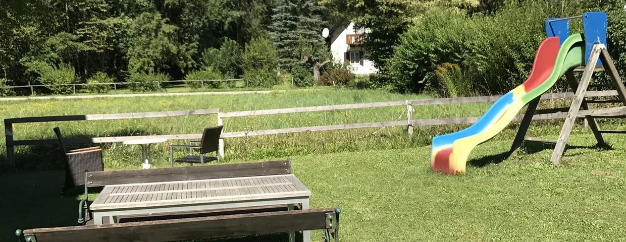 Auf der großen Spielwiese befinden sich Schaukel, Rutsche und Karussell, wo sich Ihre kleinen Familienmitglieder austoben können.