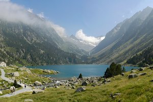 Der Lac de Gaube ist einer der vielen wunderschönen Bergseen mit sehr klarem Wasser auf der französischen Seite der Pyrenäen. Aus vielen unterirdischen Gletschern wird er permanent gespeist, und besitzt daher eine besonders hervorragende Wasserqualität. Entlang des Sees kann man wunderbar wandern und auch bergsteigen. Um den See herum befinden sich mehrere Gebirgsketten.