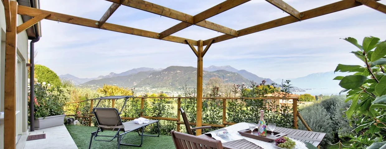 Eine Terrasse mit unglaublichem Blick auf die umliegende Landschaft und den See bietet die perfekte Erweiterung des Schlaf- und Wohnzimmers im Freien; ideal zum Sonnenbaden und für abendliche Aperitifs.