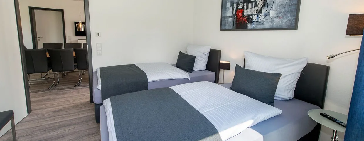 Buchen Sie eine barrierefreie Luxus-Wohnung mit eigener Terrasse im neu gebauten Apartmenthaus in Bensheim. Ideal für 1-4 Personen mit zwei separaten Schlafzimmern. Moderne und schicke Einrichtung. Mit eigener Deluxe-Küche für Ihren individuellen Aufenthalt. Eine Erdgeschosswohnung mit direktem Gartenzugang und Grillmöglichkeit. Bäcker und Supermarkt um die Ecke. Free Wifi und Parken inklusive! Die Lage ist ruhig und zentral, nur 900 Meter zu Bahnhof und Altstadt. Das Inhaber geführte Haus überzeugt mit herzlicher Gastfreundschaft. Ideal für die große Familie.
