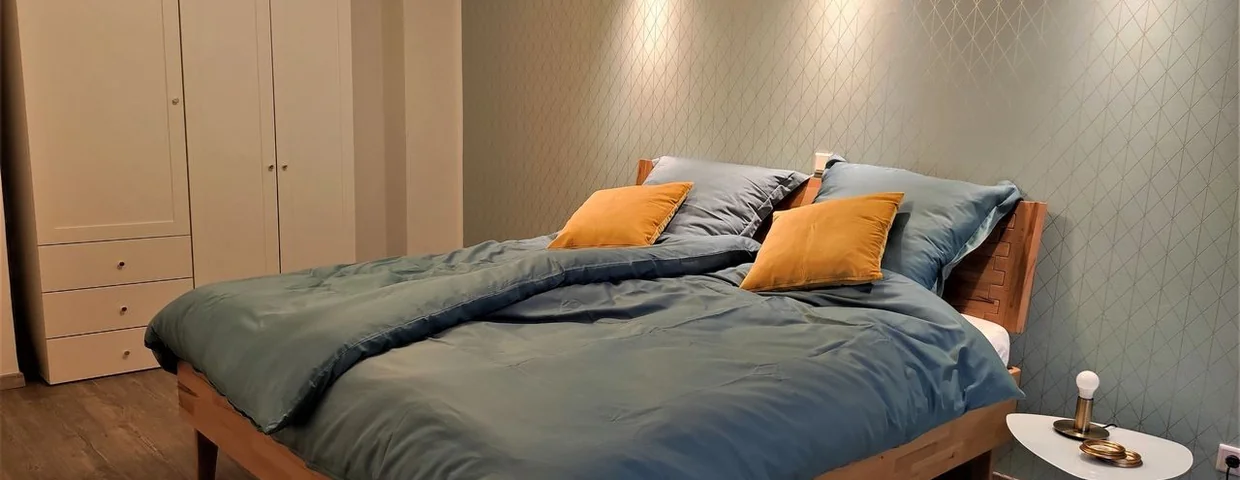Das Apartment verfügt über ein separates Schlafzimmer mit einem hochwertigen Boxspringbett (180 cm x 200 cm). So steht einem guten Schlaf nichts im Wege.