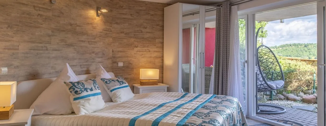 Elegantes Studio in der Apartmentanlage "Maarberg Resort" in Schalkenmehren am See. Herrlicher Seeblick.