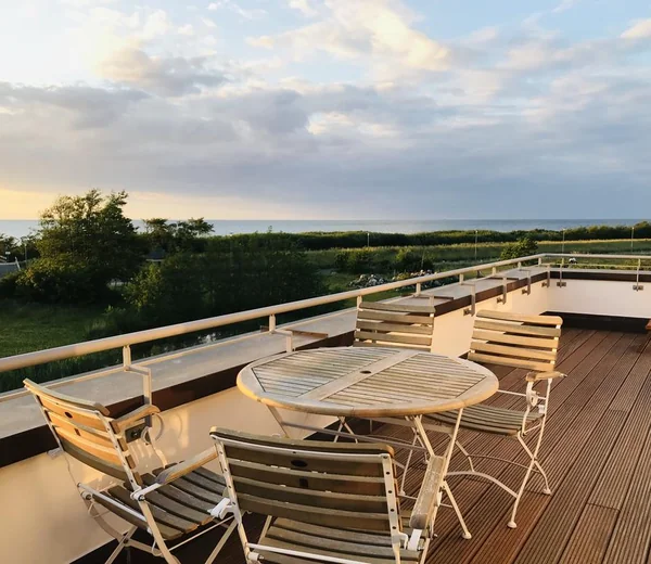 Der Balkon ist sowohl vom Wohnzimmer als auch vom Schlafzimmer aus begehbar. Natürlich stehen Ihnen hier auch Terrassenmöbel zur Verfügung, sodass Sie beispielsweise Ihr Frühstück oder Ihr Abendessen ganz privat im Sonnenschein zu sich nehmen können. Die Waterkant Suites liegen an der Promenade in Börgerende und somit direkt am Meer.