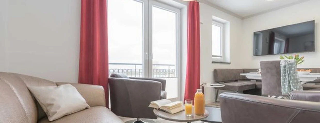 Im Villenensemblé Rosengarten in Börgerende befindet sich die Villa Cara. Dort haben wir für Sie auf ca. 59 Quadratmetern eine strandnahe und sonnige 3-Zimmer-Ferienwohnung eingerichtet. Die Unterkunft befindet sich im 1. Obergeschoss und hat einen kleinen Balkon, der Ihnen nicht nur Meerblick sondern auch strahlenden Sonnenschein von der Mittagszeit bis zum Sonnenuntergang bietet. Die familienfreundliche Wohnung ist für vier Personen eingerichtet. Sie liegt nur wenige Schritte vom Meer entfernt.Im liebevoll eingerichteten Wohnbereich finden Sie ein kleines Sofa (Zweisitzer) und zwei gemütliche Drehsessel. Ein großer Flat Screen-TV ist an der gegenüberliegenden Wand befestigt.Im offenen Koch- und Essbereich finden Sie eine Einbauküche sowie eine Eckbank mit Tisch (ausziehbar) und zwei Stühlen. Diese gemütliche Sitzecke eignet sich auch hervorragend um den Abend im Kreise der Familie mit Gesellschaftsspielen ausklingen zu lassen. Die voll ausgestattete Einbauküche mit Mikrowelle (im Backofen integriert), Cerankochfeld, Geschirrspüler und Kühlschrank (mit kleinem Gefrierfach) lässt keine Wünsche offen.In den beiden Schlafzimmern finden Sie jeweils ein komfortables Doppelbett (180 cm x 200 cm) sowie einen geräumigen Kleiderschrank. Die Fenster der Schlafräume sind mit Fliegengittern ausgestattet, so dass Sie nachts vor kleinen, unerwünschten Besuchern geschützt sind. Auch hier sind Flat Screen-TVs vorhanden.Das Bad ist mit einer ebenerdigen Dusche, einem beleuchteten Wandspiegel und einem Waschtisch samt Unterschrank ausgestattet. Das Badfenster hat ebenfalls ein Fliegengitter.In dem geräumigen Flur steht neben der Garderobe ein Schrank mit einer kleinen Auswahl an Büchern und Spielen.Weiterhin gibt es eine Abstellkammer. Hier finden Sie u. a. auch ein kostenfreies Babyreisebett.Die Wohnung verfügt über eine Fußbodenheizung sowie eine kontrollierte Wohnraumlüftung.Zur Ferienwohnung Dorschjäger gehört auch direkt vor dem Haus ein kostenfreier PKW- Außenstellplatz. Fahrradständer befinden sich an einem der Nachbarhäuser - der Villa Alizé.Die Wohnung ist eine Nichtraucherwohnung. Bitte beachten Sie, dass diese Wohnung nicht für Hunde- und Katzenhaar-Allergiker geeignet ist.Die Wohnung verfügt über kostenloses WLAN (Das WLAN ist ausschließlich für die Verwendung von Social Media und den Austausch von Bildern mit Familie und Freunden gedacht. Die Nutzung zum Streamen von Filmen ist nicht vorgesehen.)Wäscheset und Kinderhochstuhl sind kostenpflichtig über die Ferienvermittlung zubuchbar.Sichern Sie sich den Anspruch auf einen der begehrten Strandkörbe (Anfang Mai - Ende August) und buchen Sie jetzt zu besonderen Konditionen (12,00 pro Tag oder 75,00 pro Woche).Wir freuen uns auf Ihren Besuch und wünschen Ihnen einen tollen [&] erholsamen Urlaub mit vielen schönen Eindrücken, an die Sie sich gerne erinnern!