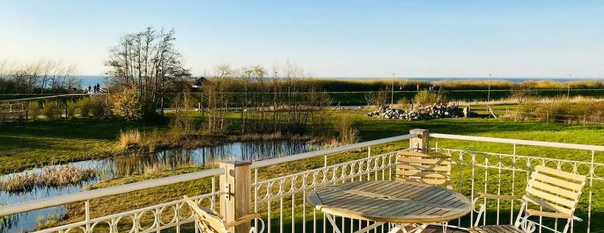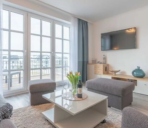 Hochwertig ausgestattete Wohnung in erster Reihe - traumhafter direkter MeerblickDie Zwei-Zimmer-Wohnung wurde 2020 umfassend und mit viel Liebe zum Detail überarbeitet und präsentiert einen weitläufigen Blick in Richtung Ostsee.Das offene Wohnzimmer bietet Ihnen vermutlich alle Annehmlichkeiten, die Sie von Ihrem zu Hause gewohnt sind. Mit der Marshall Bluetooth Anlage können Sie Ihre gesamte Musikbibliothek auch im Urlaub genießen. Falls Sie genug vom Meeresrauschen haben sollten, steht ein moderner Flachbildfernseher mit Youtube und Surffunktion zur Verfügung. Das großzügige Sofa lädt zum Entspannen ein und lässt sich bei Bedarf zu einem Schlafsofa umwandeln. Neben dem Sofa finden Sie einen bequemen Sessel mit Ottoman. Die gesamte Wohnung ist mit Echtholzparkett ausgestattet und mit wunderschönen Farben von Anna von Mangoldt gestaltet. In allen Räumen finden Sie neben Originalgemälden auch Fotografien aus den 1920er und 1930er Jahren von Karl Eschenburg, dem bekannten Warnemünder Fotografen.Die Wohnung verfügt über kostenloses WLAN aus einem eigenen Gigacube. (WLAN ist ausschließlich für die Verwendung von Social Media und den Austausch von Bildern mit Familie und Freunden gedacht. Die Nutzung zum Streamen von Filmen ist nicht vorgesehen.)Die in den Wohn-/Essbereich integrierte Einbauküche verfügt über einen Geschirrspüler, einen Kühlschrank mit Gefrierfach, einen Backofen, ein Cerankochfeld, eine Mikrowelle, einen Toaster, eine Filterkaffeemaschine, eine Nespresso Delonghi Maschine, einen Wasserkocher und vom Kochtopf bis zum Eierbecher über eine komplette Küchenausstattung. Ein geräumiger hölzerner Esstisch lädt zu gemeinsamen Mahlzeiten ein.Das Schlafzimmer besticht mit einem großen Doppelbett und direktem Meerblick. In Schlaf- und Wohnzimmer sind zusätzlich zu den schönen Vorhängen separate Blindouts vorhanden, die je nach Verdunkelungswunsch zusätzlich zugezogen werden können. Einem erholsamen Urlaub für zwei Erwachsene und zwei Kinder (bis 15 Jahre) steht in dieser Ferienwohnung nichts entgegen. Damit Sie bei der Anfahrt Platz sparen, stehen für Ihr Kleinkind ein Babybett ohne Matratze sowie ein Hochstuhl bereit. Ein Wäscheset kann pro Person kostenpflichtig zugebucht werden.Das Badezimmer ist mit ebenerdiger Dusche, Waschtisch und großen Spiegel ausgestattet.Sowohl von der 13 qm großen Terrasse als auch aus Wohnzimmer, Küche und Schlafzimmer genießen Sie einen herrlichen Ausblick auf die Ostsee. Die Terrasse erreichen Sie bequem direkt vom Schlafzimmer und vom Wohnzimmer. Einem gemütlichen gemeinsamen Frühstück an frischer Küstenluft steht nicht entgegen.Für die kühleren Tage des Jahres verfügt die gesamte Ferienwohnung über eine Fußbodenheizung. Alle Einrichtungsgegenstände unserer Ferienwohnung sind in hervorragendem Zustand und damit das so bleibt, einer ständigen Kontrolle unterzogen.An der Unterkunft stehen ein PKW-Stellplatz und Fahrradständer zur Verfügung. Die Wohnung besitzt zudem einen kleinen Abstellraum für Ihr Gepäck.Sichern Sie sich zusätzlich den Anspruch auf einen der begehrten Strandkörbe nur ein paar Meter entfernt von den rauschenden Wellen der Ostsee (Anfang Mai - Ende August) und buchen Sie jetzt zu besonderen Konditionen (12,00 pro Tag oder 75,00 pro Woche.)Wir freuen uns auf Sie und wünschen Ihnen einen tollen [&] erholsamen Urlaub!