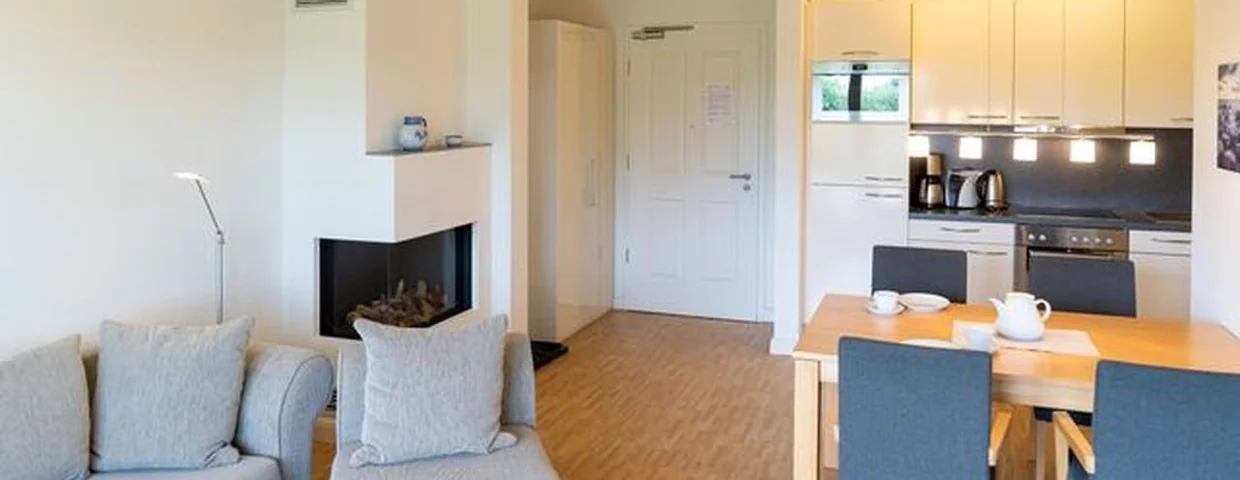 Ruhige und helle Ferienwohnung mit Balkon und unverbautem Blick zum Deich (Ostseeseite) 30 Meter bis zum StrandDie mit hochwertigen Möbeln ausgestatte Zwei-Zimmer-Wohnung ist für zwei Erwachsene und ein Kind bestens geeignet. Das Schlafzimmer empfängt Sie mit einem gemütlichen Doppelbett (160 x 200m) und einem Schrank mit viel Stauraum. Im kombinierten Ess- und Wohnraum befinden sich eine bequeme Couch mit Schlaffunktion (140 x 190 m), ein Flat-TV, ein Bluetooth-Lautsprecher sowie ein großer Holztisch mit vier Stühlen. An kalten Tagen schafft der Gaskamin mit Glasfenster wohlige Wärme und eine heimelige Atmosphäre. Die komplett ausgestatte offene Küche mit Herd, Backofen, Mikrowelle, Toaster und hochwertigem Geschirr verfügt über alles, was Sie für einen angenehmen Aufenthalt benötigen. Das elegante Bad ist mit einer großzügigen, bodengleichen Dusche mit Glastrennwand, einem kleinem Waschtisch mit Kosmetikspiegel und fest installiertem Fön ausgestattet. In der gesamten Wohnung ist eine Fußbodenheizung verlegt. Vom Balkon mit Nordausrichtung haben Sie einen freien Blick zum Deich und können in den Abendstunden bei einem Glas Wein das Licht der untergehenden Sonne genießen.Zur Wohnung gehören zudem ein kostenfreier Tiefgaragenstellplatz und eine Abstellmöglichkeit für Fahrräder. Bitte beachten Sie die Durchfahrtshöhe von max. 1,90 m bei der Tiefgarage. Mit einem Personenaufzug gelangen Sie von der Tiefgarage aus direkt zu Ihrer Wohnung. Die Wohnung befindet sich in der Hochparterre. Im Erdgeschoss der Wohnung befindet sich ein gekennzeichneter Abstellbereich für Kinderwagen.Es handelt sich um eine Nichtraucherwohnung. Es sind keine Haustiere erlaubt.Wäscheset, Kinderreisebett und Kinderhochstuhl können kostenpflichtig zugebucht werden. Eine Waschmaschine und ein Trockner stehen im separaten Hauswirtschaftsraum im Untergeschoss der Villa zu Ihrer Verfügung (gegen Gebühr / 1,00 Euro Münzen).Das WLAN in der Unterkunft ist ausschließlich für die Verwendung von Social Media und den Austausch von Bildern mit Familie und Freunden gedacht. Die Nutzung zum Streamen von Filmen ist nicht vorgesehen.Sichern Sie sich zusätzlich den Anspruch auf einen der begehrten Strandkörbe nur ein paar Meter entfernt von den rauschenden Wellen der Ostsee (Anfang Mai - Ende August) und buchen Sie jetzt zu besonderen Konditionen (12,00 Euro pro Tag oder 75,00 Euro pro Woche.)