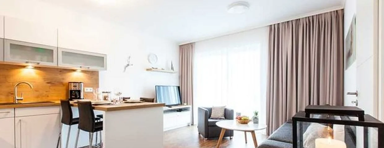 mit diesen Worten lassen sich Innenarchitektur und -Design unseres Nichtraucherapartments STRANDLIEBE perfekt beschreiben.Nur 120 Meter vom naturbelassenen Ostseestrand entfernt, heißen wir Sie in der exklusiven RESIDENZ AM MEER herzlich willkommen! Unser modernes Zwei-Zimmer-Apartment STRANDLIEBE bietet Ihnen nicht nur höchsten Wohnkomfort, sondern vor allem eine ideale Ausgangsbasis, um dem Stress des Alltags zu entfliehen und Ihre Ferien an der traumhaft schönen mecklenburgischen Küste in vollen Zügen zu genießen. Die beschauliche Ostseegemeinde Börgerende liegt in ruhiger, idyllischer aber zentraler Lage zwischen den großen Seebädern Warnemünde, Heiligendamm und Rostock. Erkunden Sie die Umgebung bei ausgiebigen Strandspaziergängen oder bei entspannten Radtouren auf dem Ostseeradweg oder schnuppern Sie die frische Meeresluft einfach direkt vor der Haustür, wo der kilometerlange weite Strand sanft in die Ostsee übergeht. Und wenn Ihnen mal nicht nach (R)ausgehen zumute ist, machen Sie sichs einfach auf Ihrer riesigen überdachten Terrasse bequem und genießen den exklusiven Charme Ihrer Ferienwohnung!Der Wohn-/ Essbereich empfängt Sie mit einer ausklappbaren Schlafcouch (170 x 200 cm), einem zusätzlichem Sessel, einem Sony Fernseher (40 Zoll) und einem Amazon Echo Show für Wunschmusik, Radio und vieles mehr. Ein moderner Küchentresen mit vier Stühlen aus hochwertigem Leder grenzt an eine komplett ausgestattete, moderne Einbauküche mit Cerankochfeld sowie Backofen, Mikrowelle, Geschirrspüler, Kühlschrank und Gefrierfach. Mit den modernen elektrischen Küchengeräten wie Kaffeemaschine, Toaster, Wasserkocher, Stabmixer und den umfangreichen Küchenutensilien lässt sich ein fantastisches Frühstück kreieren, welches im angrenzenden mit hochwertigen Gartenmöbel augestatteten Außenbereich zu sich genommern werden kann. Von Wohnbereich haben Sie direkten Zugang zur überdachten 14 qm großen Terrasse. Diese ist zur Ostseeseite mit unverbautem Deichblick gelegen und von 32 qm Grünfläche umgeben. Egal ob Regen oder Sonnenschein mit dem vorhandenen Elektrogrill sowie der Bücher-und Spielesammlung wird jeder Abend zu einem Erlebnis.Das Schlafzimmer besticht mit einem gemütlichen Doppelbett (getrennte Matratzen je 90 cm) und einer geräumigen Schrankwand. Zwei Nachttische und Leselampen direkt am Bett sowie ein Sony Fernseher (32 Zoll) unterstützen Ihre Einschlafphase. Nach dem Aufwachen können Sie direkt von hier die Terrasse betreten und einen tiefen Atemzug der frischen Küstenluft genießen.Das helle Badezimmer besticht mit einer ebenerdigen, großen Dusche mit Tropenbrause, einem edlem Granit-Waschtisch, einem großen Bad-Spiegel, einem beleuchteten Kosmetikspiegel, einem Handtuchtrockner und einem Fön.Viel Stauraum für Ihr Gepäck und andere Mitbringsel bieten die Garderobe mit Ablagemöglichkeit und ein zusätzlicher Abstellraum mit Regalsystem. Dort befinden sich zudem Staubsauger und einige Reinigungsutensilien. Eine Waschmaschine und ein Trockner stehen im separaten Hauswirtschaftsraum im Erdgeschoss des Objekts zur Verfügung (gegen Gebühr / 1,00 Euro Münzen).Direkt am Objekt befinden sich ein PKW-Außenstellplatz und Fahrradständer.Das WLAN in der Unterkunft ist ausschließlich für die Verwendung von Social Media und den Austausch von Bildern mit Familie und Freunden gedacht. Die Nutzung zum Streamen von Filmen ist nicht vorgesehen.Ein kostenfreier Kinderhochstuhl steht zur Verfügung. Ein Kinderreisebett sowie ein Wäscheset pro Person können kostenpflichtig zugebucht werden. Um höchsten Wohnkomfort zu gewährleisten, bitten wir um Ihr Verständnis, dass die Mitnahme von Haustieren nicht gestattet ist.Sichern Sie sich zusätzlich den Anspruch auf einen der begehrten Strandkörbe nur ein paar Meter entfernt von den rauschenden Wellen der Ostsee (Anfang Mai - Ende August) und buchen Sie jetzt zu besonderen Konditionen (12,00 Euro pro Tag oder 75,00 Euro pro Woche.)
