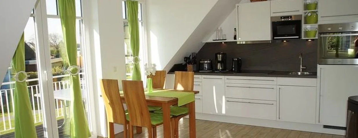 Sonnige Maisonette-Wohnung im ersten Obergeschoss nur 250 m vom Naturstrand entfernt!Die exklusive Drei-Raum-Wohnung im modernen Style wurde im Jahre 2013 erbaut und liegt in ruhiger Lage in einer kleinen Siedlung aus Ferienhäusern. Sie erstreckt sich über zwei Ebenen und bietet Ihnen einen traumhaften Blick auf die Ostsee. Die moderne Einrichtung verfügt zudem über jeglichen Komfort, den Sie für einen entspannten Urlaub erwarten.Der Wohn-/Essbereich empfängt bis zu vier Gäste mit einer offenen Wohnküche, einem freundlichen Essbereich, einer TV-Lounge mit Plasma TV (106 cm) sowie einem gemütlichen Ecksofa zum Relaxen. Die hochwertige Küche ist umfangreich ausgestattet. Ein Herd mit Cerankochfeld, ein Backofen, ein Kühlschrank mit Gefrierfach und eine Mikrowelle lassen das Herz eines jeden Hobbykochs höher schlagen. Die kleinen Küchenhelfer wie Toaster, Wasserkocher und Kaffeemaschine schaffen einen sorgenfreien Start in den Tag. Das moderne Tageslicht-Bad mit Dusche ist mit einem Handtuchheizkörper und einem Fön ausgestattet. Das Schlafzimmer mit Doppelbett verfügt über einen geräumigen Kleiderschrank sowie einen Fernseher. Außerdem wurden im Schlafbereich Vorhänge zum Abdunkeln angebracht. Von der lichtdurchfluteten, offenen Dachgalerie (ebenfalls mit Doppelbett) haben Sie einen traumhaften Blick auf die Ostsee. Die Fußbodenheizung in der gesamten Wohnung und ein Kaminofen machen Ihren Urlaub auch im Winter traumhaft gemütlich (Kaminholz muss selbst organisiert werden). Egal ob Morgensonne oder Sonnenuntergang - auf den beiden Balkonen in Süd- und Nordausrichtung können Sie diese genießen und dabei das Rauschen der Ostseewellen auf sich wirken lassen.Das WLAN in der Unterkunft ist ausschließlich für die Verwendung von Social Media und den Austausch von Bildern mit Familie und Freunden gedacht. Die Nutzung zum Streamen von Filmen ist nicht vorgesehen.Zu Ihrer Wohnung gehören ein Pkw-Stellplatz, Fahrradbügel zum Anschließen und ein abschließbarer (Fahrrad-) Abstellschuppen direkt am Haus. Eine Waschmaschine steht im separaten Hauswirtschaftsraum zur Verfügung (gegen Gebühr / 1,00 Euro Münzen).Es handelt sich um eine Nichtraucherwohnung. Es sind keine Haustiere erlaubt. Firmenbuchungen auf Anfrage.In der Zwischen- und Nebensaison wird für die dritte und vierte Person (ab 3 Jahren) ein Aufpreis in Höhe von 10,00 Euro/ÜN pro Person berechnet.Wäscheset, Kinderreisebett und Kinderhochstuhl können kostenpflichtig zugebucht werden.Sichern Sie sich zusätzlich den Anspruch auf einen der begehrten Strandkörbe nur ein paar Meter entfernt von den rauschenden Wellen der Ostsee (Anfang Mai - Ende August) und buchen Sie jetzt zu besonderen Konditionen (12,00 Euro pro Tag oder 75,00 Euro pro Woche.)Wir freuen uns auf Ihren Besuch und wünschen Ihnen einen angenehmen Aufenthalt!