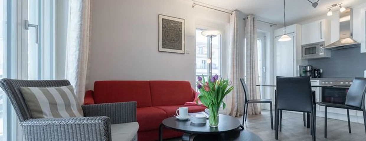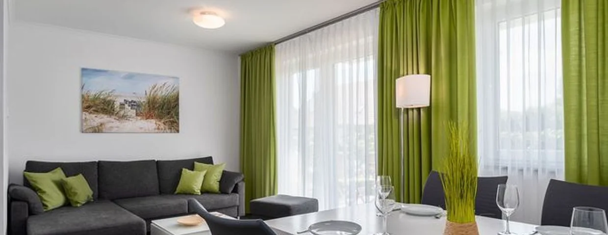 Ferienwohnung Schilfgras inklusive kostenfreiem WLANIm Villenensemblé Rosengarten in Börgerende haben wir für Sie im Haus Alizé eine strandnahe und sonnige 3-Zimmer-Ferienwohnung mit ca. 56 qm eingerichtet, die Platz für 3 Erwachsene oder 2 Erwachsene mit 2 Kindern bietet.Die im Erdgeschoss gelegene Wohnung befindet sich in Strandnähe (100 m) und besitzt eine nach Südwesten ausgerichtete Terrasse mit Sonne bis spät am Abend. Auf dem Sitzbereich mit angrenzender großer Rasenfläche stehen moderne Gartenmöbel zum Essen und Relaxen für 4 Personen zur Verfügung.Die liebevoll eingerichtete Wohnung ist bestens ausgestattet. Sogar an Bücher und Spiele wurde gedacht. Der Küchenbereich verfügt über eine geräumige Kühl- und Gefrierkombination (160 l / 57 l). Eine Nespresso Maschine ist ebenso vorhanden wie ein Milchaufschäumer. Abgerundet wird die Küche neben einem Backofen und leisem Geschirrspüler durch ein Cerankochfeld mit passender Dunstabzugshaube. Zum Essen lädt Sie neben der Terrassenmöbelierung auch der große Esstisch im Wohnbereich (1,80 m x 1,00 m) ein. Dieser eignet sich hervorragend, um den Abend im Kreise der Familie mit Gesellschaftsspielen ausklingen zu lassen. Harmonisch abgestimmt wird der Wohnbereich durch eine hochwertige Eckcouch mit Hocker, so dass alle Urlaubsgäste unserer Ferienwohnung Schilfgras einen gemütlichen Platz finden. Der 50 Smart TV ist ferner mit Apple TV ausgestattet und bietet die Möglichkeit, Multimedia-Angebote aus dem Internet mittels Ihres Accounts oder iPhone /iPad zu nutzen. Via Screen Share können Multimedia PC Inhalte auf den TV projiziert werden. Zudem steht Ihnen eine Soundanlage mit CD-Player zur Verfügung, welche Sie auch per Bluetooth mit Ihrem Endgerät verbinden können.Im ersten Schlafzimmer finden Sie ein komfortables Doppelbett (180 cm x 200 cm / zwei 7-Zonen-Matratzen) mit integrierten Leselampen sowie einen geräumigen viertürigen Kleiderschrank. Auch hier steht Ihnen ein 50 Smart-TV zur Verfügung. Das zweite Schlafzimmer ist mit Bedacht auf die jüngeren Familienmitglieder mit einer hochwertigen Schlafcouch (integrierter Matratze 150 cm x 200 cm inkl. Lattenrost) so eingerichtet, dass auch hier die Möglichkeit besteht, genügend Platz zum Spielen und Chillen zu finden. Im Siteboard ist zusätzlicher Stauraum vorhanden. Des Weiteren ist hier ebenfalls ein 32 Smart-TV vorhanden. Das Bad mit Fenster ist mit einer ebenerdigen Regenwalddusche, einem beleuchten großen Wandspiegel und Waschtisch ausgestattet. Weiterhin gibt es eine Abstellkammer.Die Wohnung verfügt über eine Fußbodenheizung sowie eine kontrollierte Wohnraumlüftung.Zur Ferienwohnung Schilfgras gehören Fahrradständer direkt vor dem Haus und ein kostenfreier PKW-Außenstellplatz.Das WLAN ist ausschließlich für die Verwendung von Social Media und den Austausch von Bildern mit Familie und Freunden gedacht. Die Nutzung zum Streamen von Filmen ist nicht vorgesehen.Die Wohnung ist eine Nichtraucherwohnung. Es sind keine Haustiere erlaubt.Wäscheset, Kinderreisebett und Kinderhochstuhl können kostenpflichtig zugebucht werden.Sichern Sie sich den Anspruch auf einen der begehrten Strandkörbe (Anfang Mai - Ende August) und buchen Sie jetzt zu besonderen Konditionen (12,00 pro Tag oder 75,00 pro Woche).Wir freuen uns auf Ihren Besuch und wünschen Ihnen einen tollen [&] erholsamen Urlaub mit vielen schönen Eindrücken, an die Sie sich gerne erinnern!
