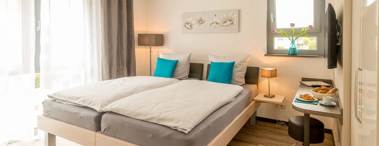 Buchen Sie ein modernes Doppelzimmer-Apartment mit Komfort-Ausstattung für 1-2 Personen im neu gebauten Apartmenthaus in Bensheim. Die schicke Einrichtung wird Sie begeistern. Mit eigener Mini-Küche für Ihr individuelles Frühstück. Nespressoautomat und Tee-Station. Bäcker und Supermarkt um die Ecke. Free Wifi und Parken inklusive! Die Lage ist ruhig und zentral, nur 900 Meter zu Bahnhof und Altstadt. Das Inhaber geführte Haus überzeugt mit herzlicher Gastfreundschaft.